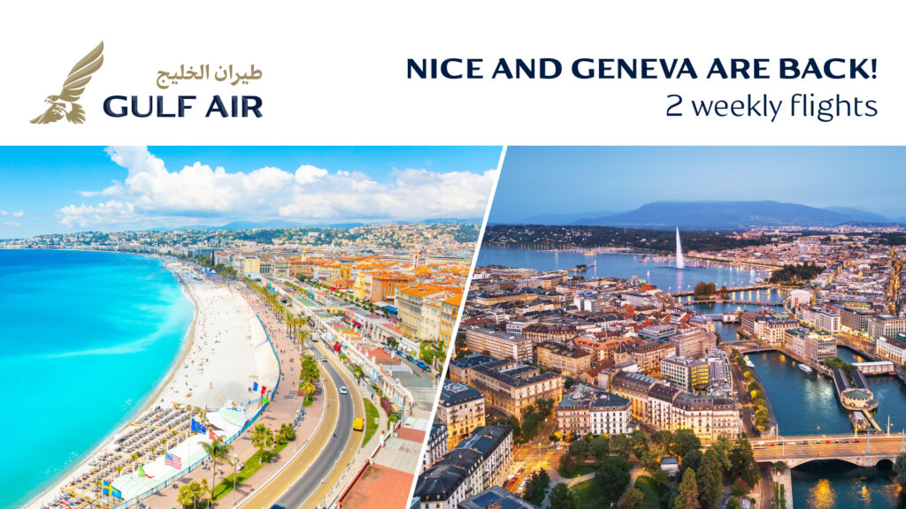 Bookings for Geneva and Nice are now available through gulfair.com, the Gulf Air mobile app, the airline’s contact center, and authorized travel agents.